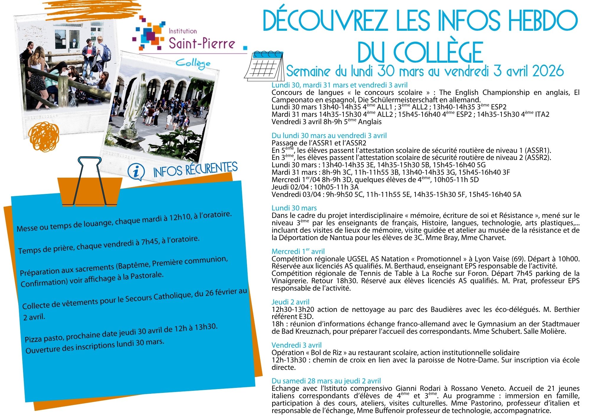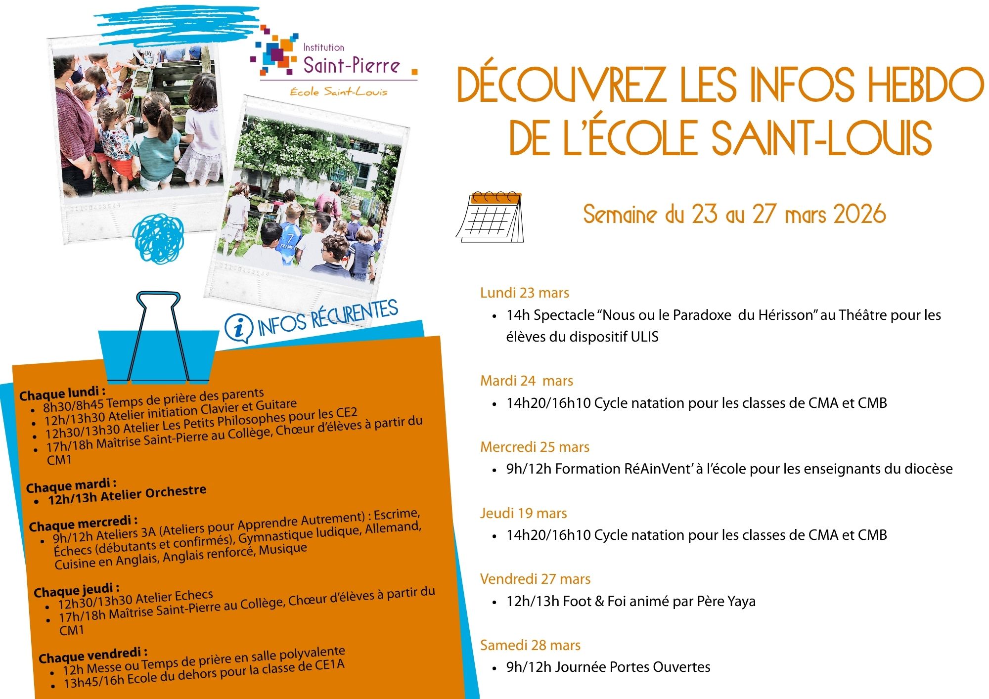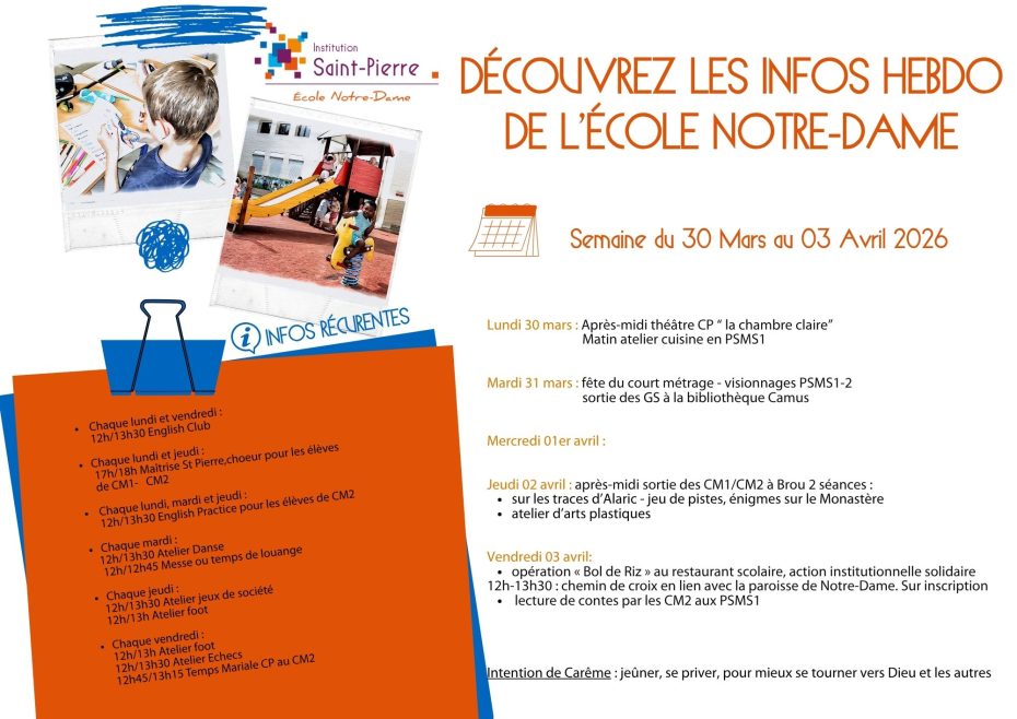 Hebdo de notre institution